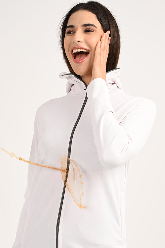 • Water Repellent: Fabric surface treatment causes water droplets to bead and roll off, while maintaining breathability.