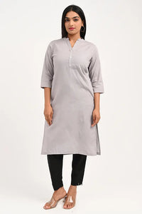· Elegant & Versatile Design: The classic straight-cut silhouette with a minimalist Mandarin collar makes this light grey kurti a perfect choice for the office, college, casual outings, or festive gatherings.