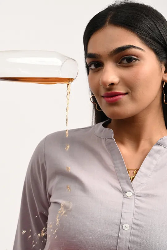 Spilled your morning coffee? Caught in a sudden drizzle? Worry no more. The Addaxplay Stain-Proof Kurti is engineered to keep you looking pristine and confident, no matter what your day throws at you. This beautiful light grey Kurti combines timeless elegance with revolutionary fabric technology.