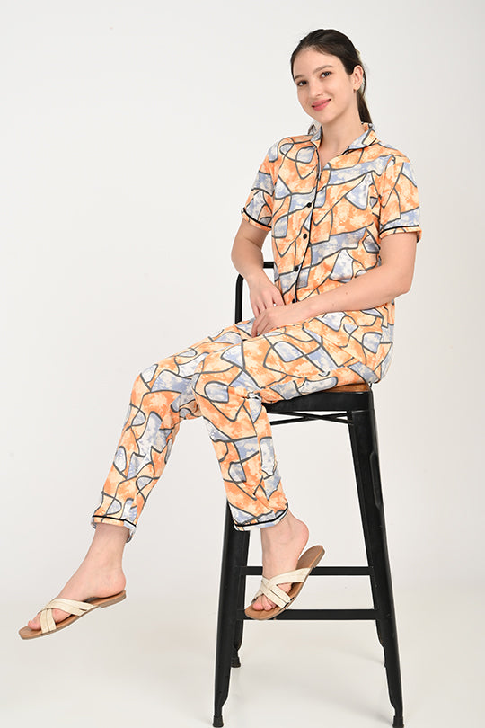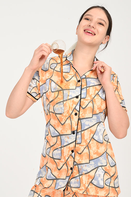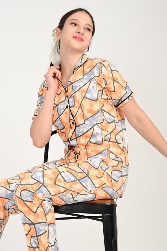 Anti Stain Cotton Orange Pyjama-V2 Set