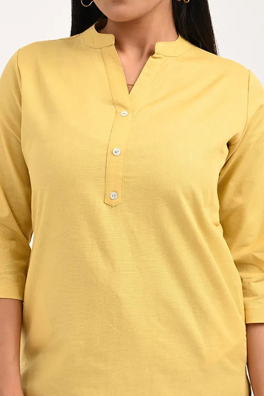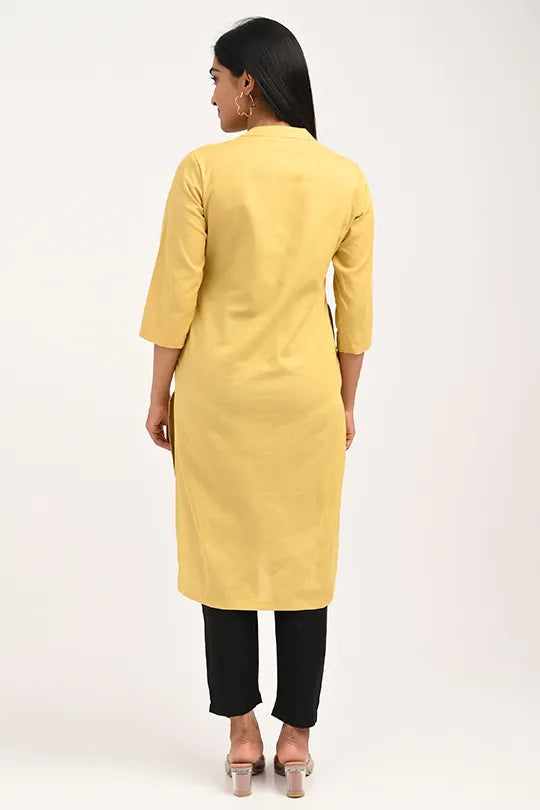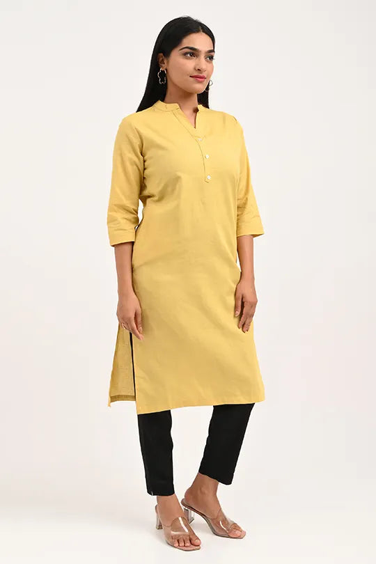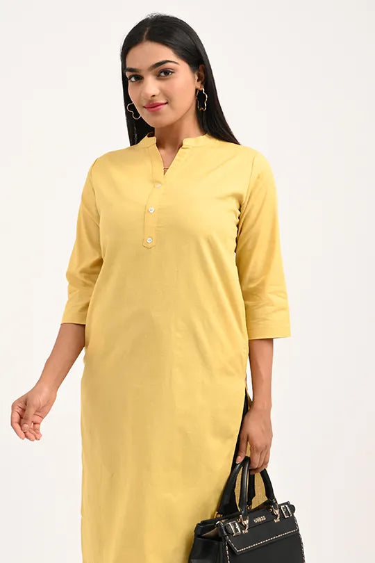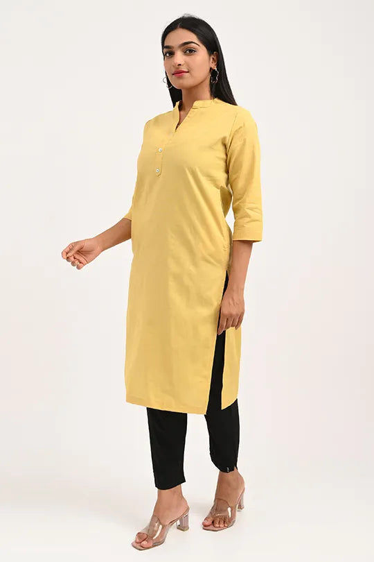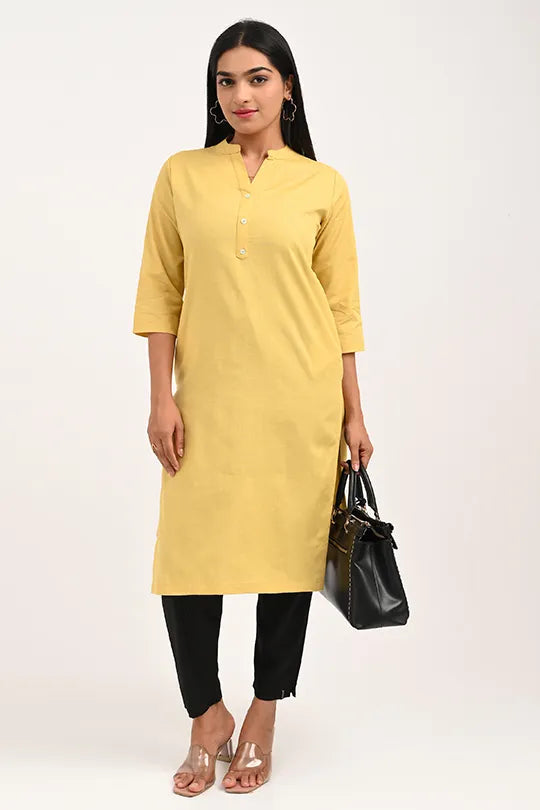 · Elegant & Versatile Design: The classic straight-cut silhouette with a minimalist Mandarin collar makes this yellow kurti a perfect choice for the office, college, casual outings, or festive gatherings.