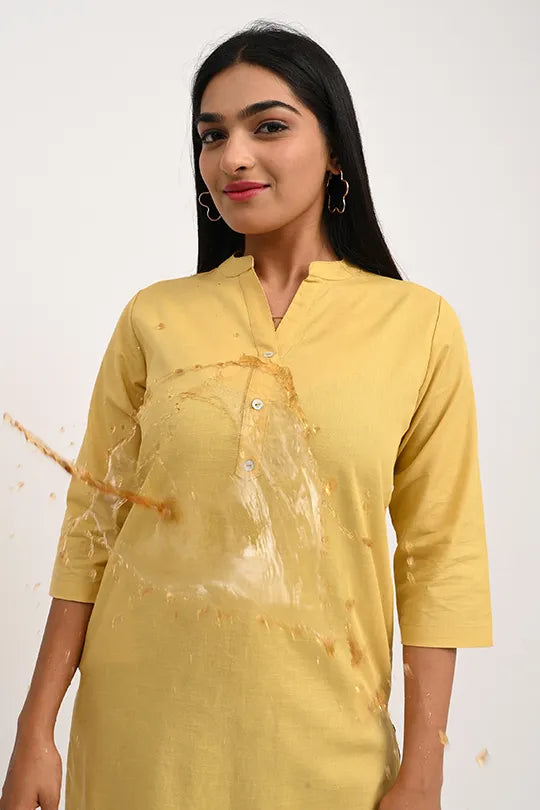 Spilled your morning coffee? Caught in a sudden drizzle? Worry no more. The Addaxplay Stain-Proof Kurti is engineered to keep you looking pristine and confident, no matter what your day throws at you. This beautiful yellow Kurti combines timeless elegance with revolutionary fabric technology.