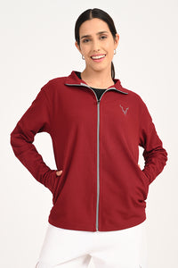Meet your new go-to jacket. The ADDAXPLAY Performance Jacket in timeless Maroon combines versatile style with high-tech functionality. It's the only jacket you'll need for sun protection, stain resistance, and effortless style, seamlessly taking you from your morning workout to your evening plans.